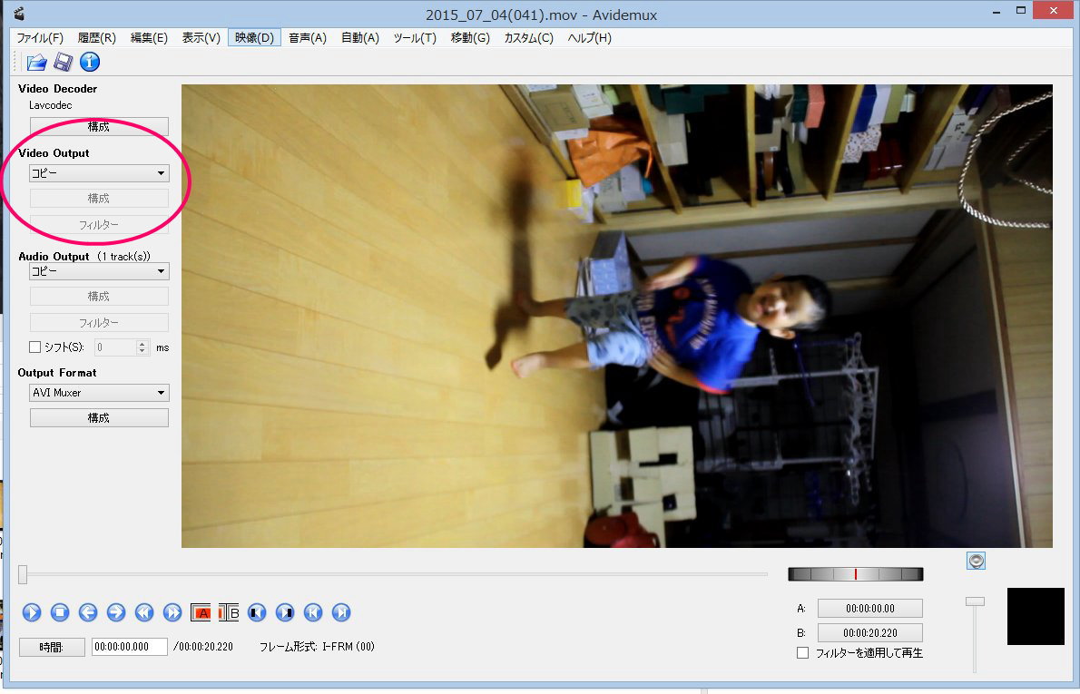 動画を回転する(Avidemux)