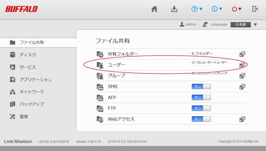 使っているNASは、 BUFFALO NAS LS210D0201G です。