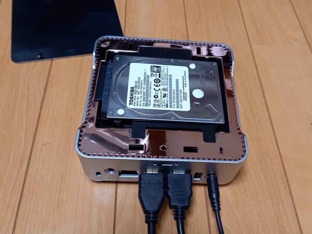 このミニPCは、内臓ドライブが増設できるので、増設したドライブに動画ファイルを保存しています。この増設ドライブにドラマを録画しておき、他のパソコンから保存や視聴できるように設定しています。