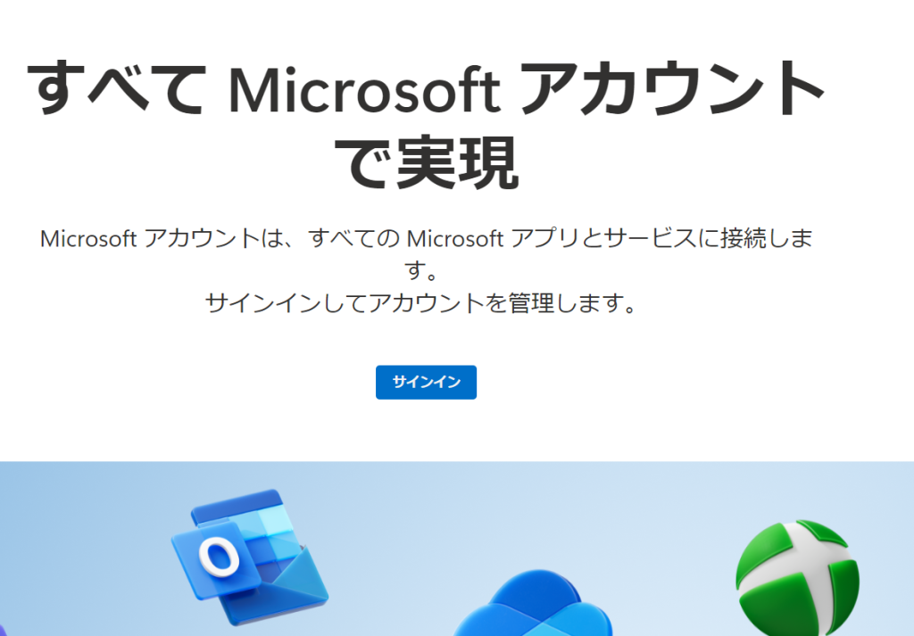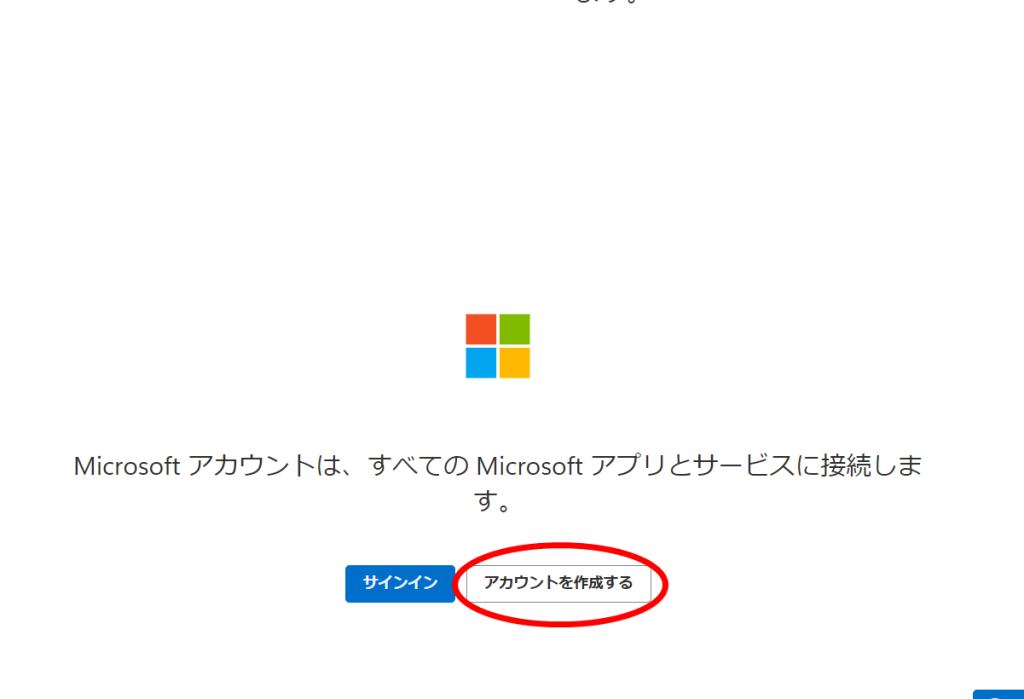 MSアカウントを作成するために MSアカウントのトップページ にアクセスします。