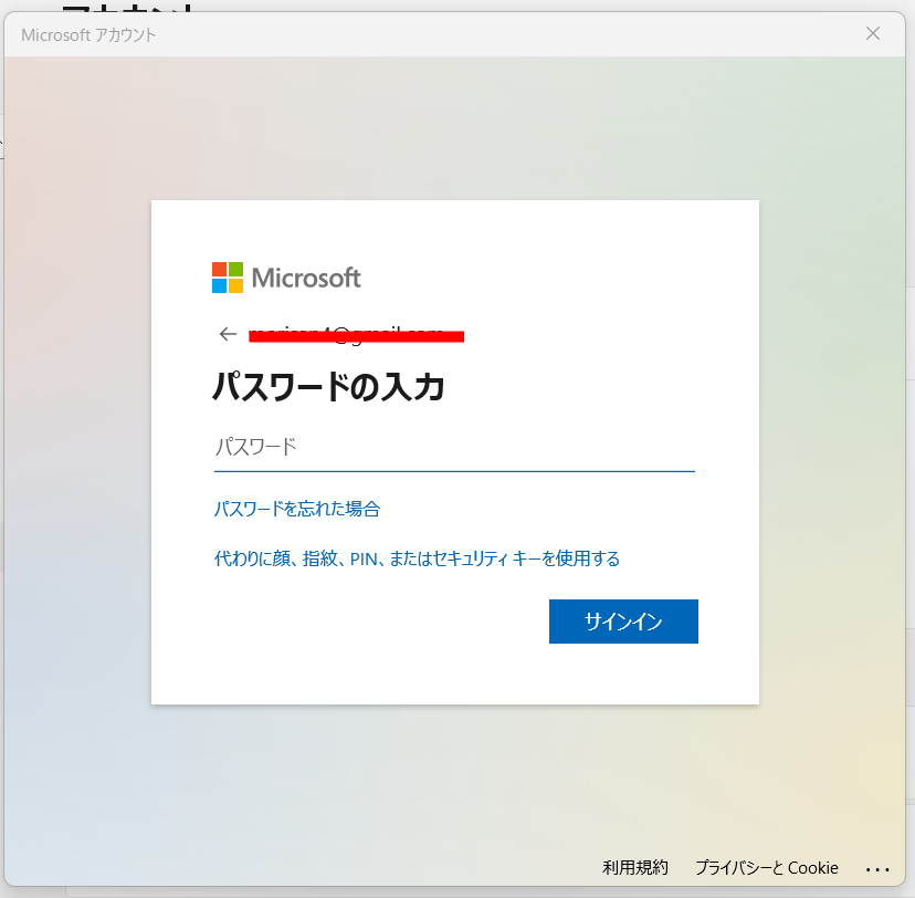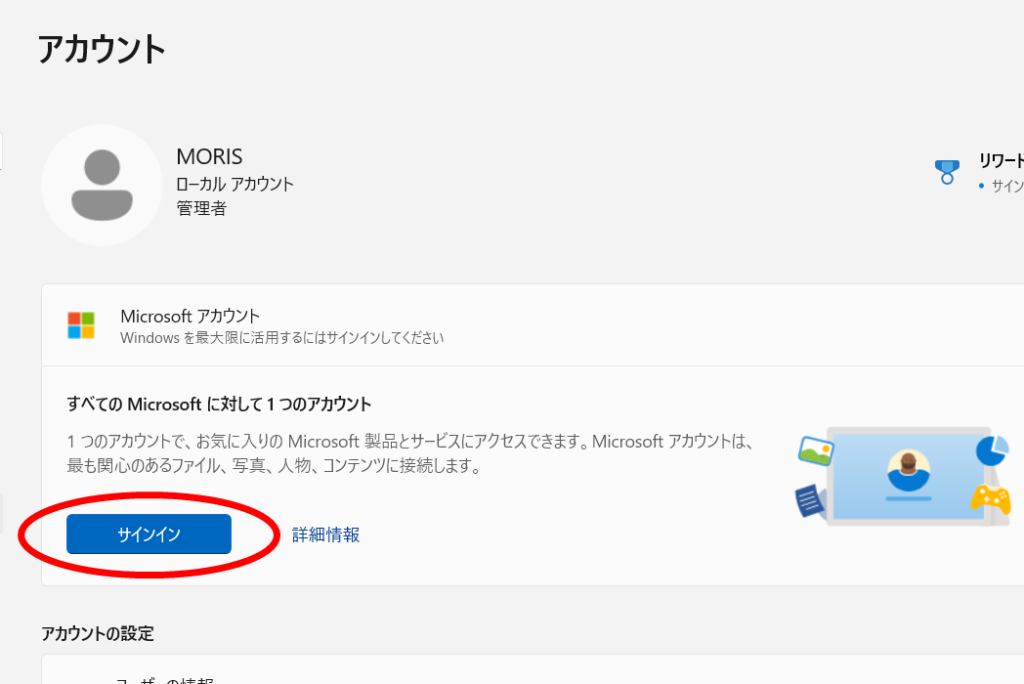 ローカルアカウント状態のパソコンをMSアカウントでログインするには