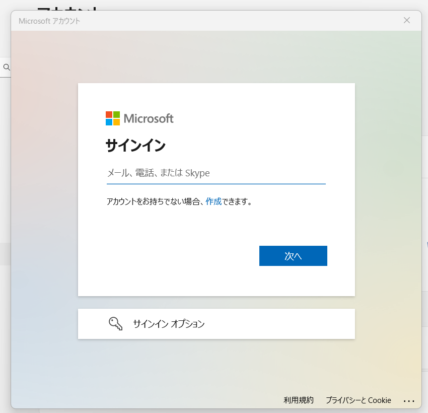 MSアカウントを作成するには、メールアドレスとパスワードを準備します。
