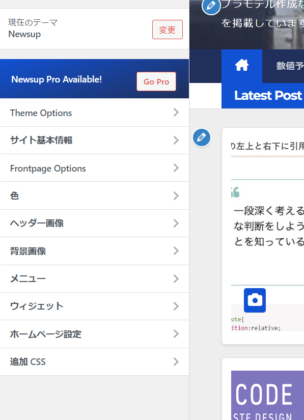 WPの管理画面で 外観 → カスタマイズ を開きます