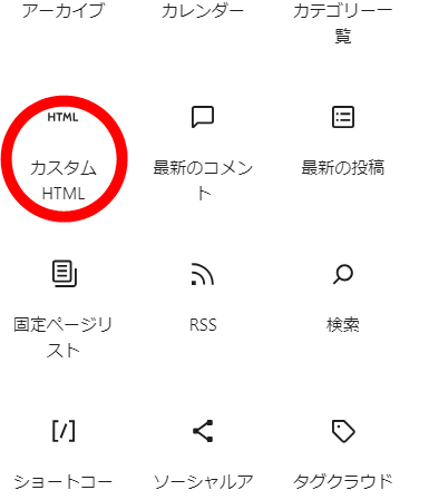 カスタムHTMLのブロックに次のHTML文を編集して貼り付けます。