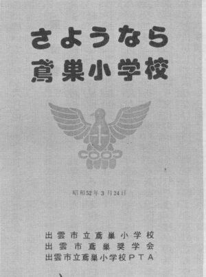 鳶巣小学校は、出雲市に存在していましたが、昭和52年3月に、川跡小学校と合併し北陽小学校となったために廃校となりました。(写真をクリックすると拡大されます)