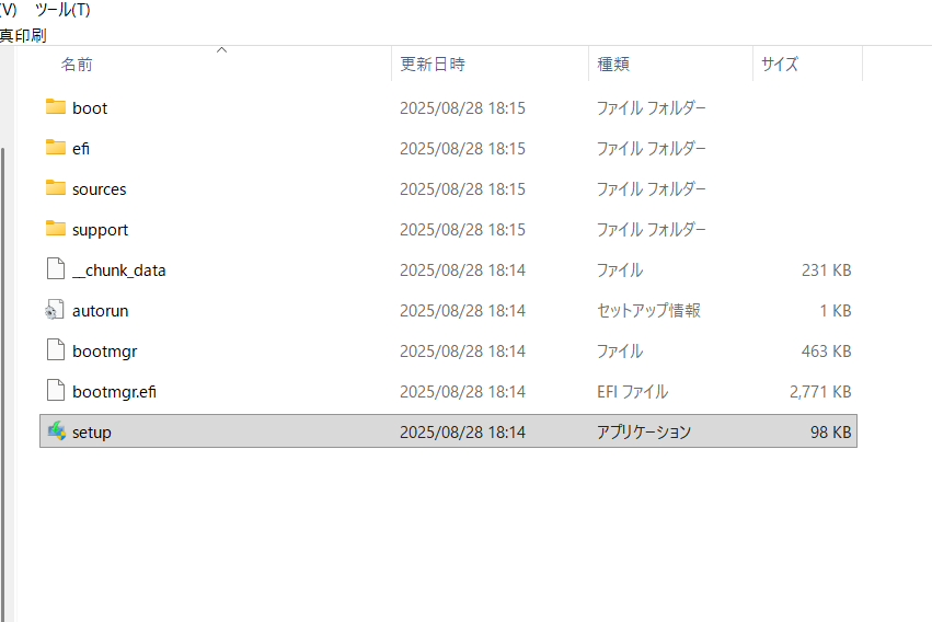 ダウンロードしたisoファイルをダブルクリックしsetup を実行します。