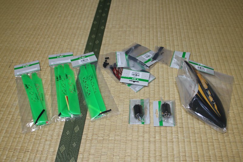 メインモータ キャノピー メインローター(緑の合成樹脂) など、しめて6、000円ほどかかりました。