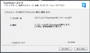 臨時にサーバや友達のパソコンに入りこむ場合は、実行を選択します。