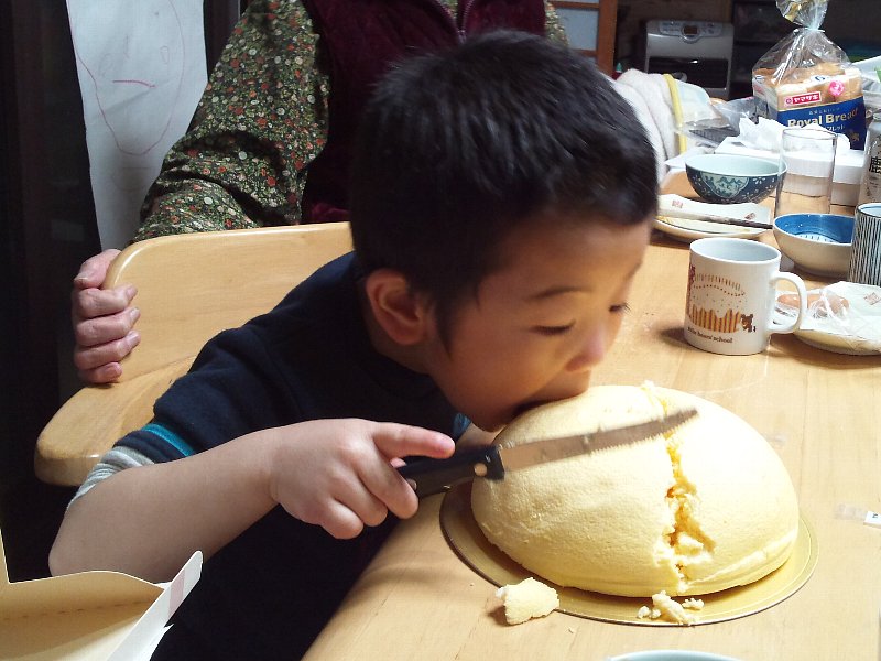 昨晩は、つよぴ~のお母さんがお姉さんにチーズケーキをもらって帰りました。