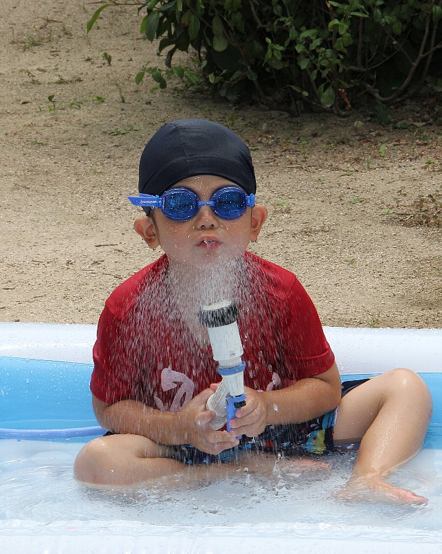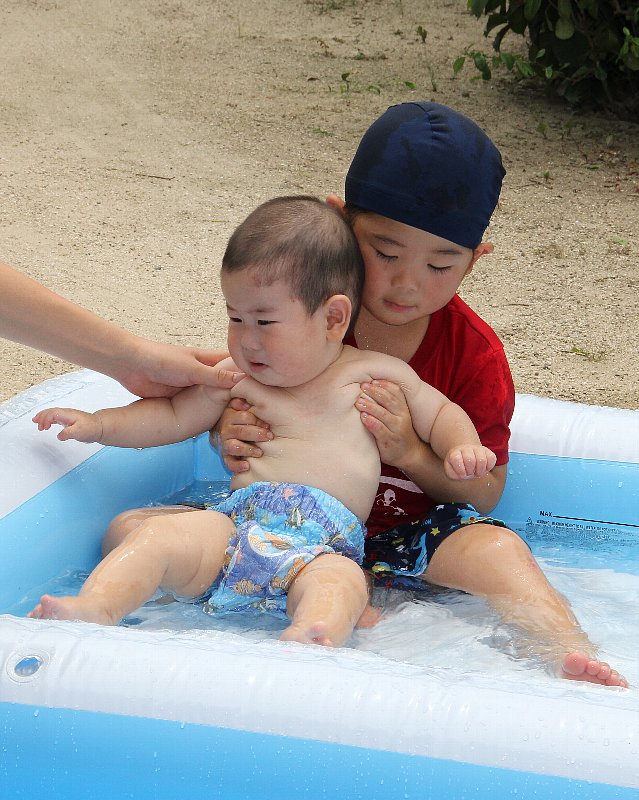りゅうちゃんは、生まれて初めてのプールでしたが、喜んではくれなかったようです。