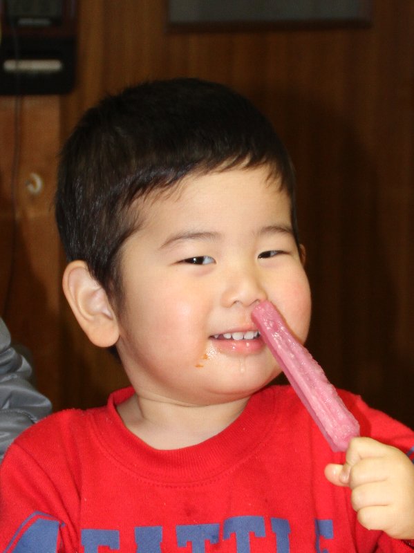 アイスクリームを鼻で食べます。