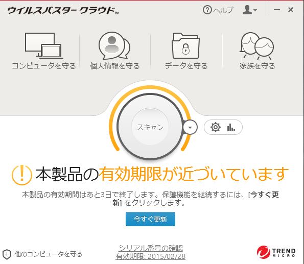 セキュリティソフトは、ウイルスバスターを使っていましたが、今月いっぱいで有効期限が切れます。