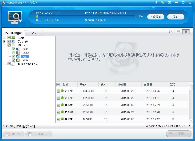 最終的に使ったのが Wondershare データリカバリー です。