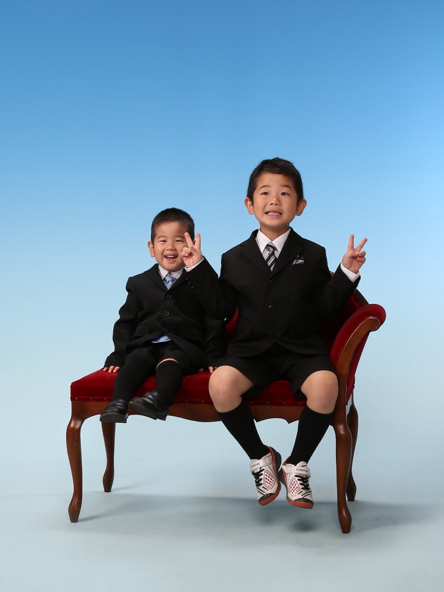 お兄ちゃんの御下がりの背広が少し大きかったです。