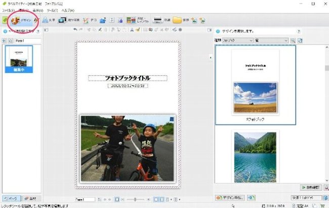 「快速! ササッとフォトブック」を立ち上げて、左上の「デザインを選択」し、テンプレートを選び、用紙サイズは、A4サイズの縦に設定しました。