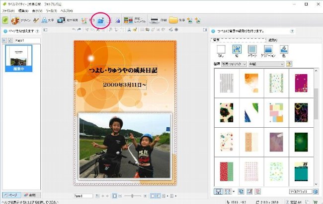 背景が殺風景なので、「背景や縁取りを設定」をクリックし、良さそうな背景を選択して貼り付けてみました。