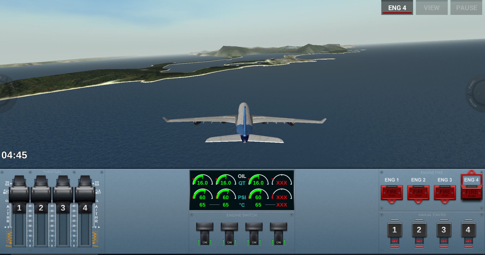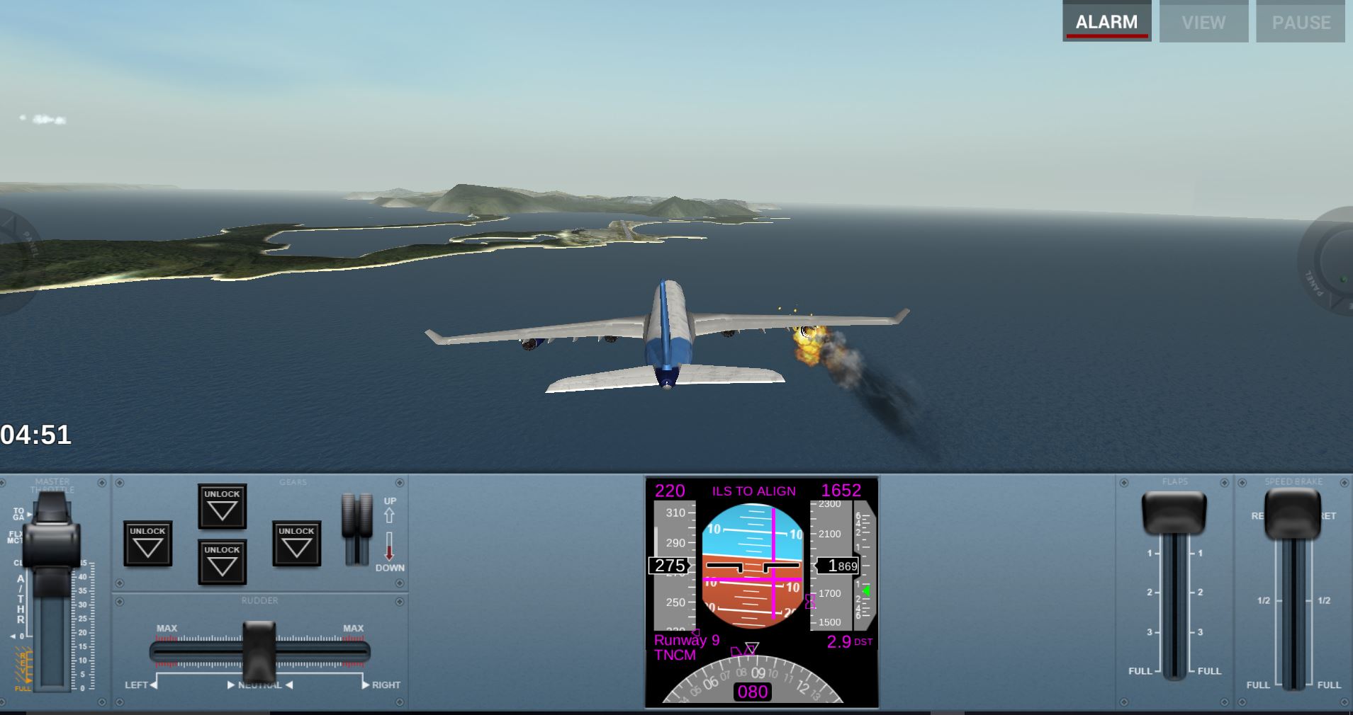 かなり本格的なシミュレーターで、離陸、着陸、エンジン故障モードと様々です。