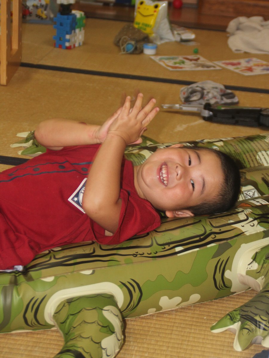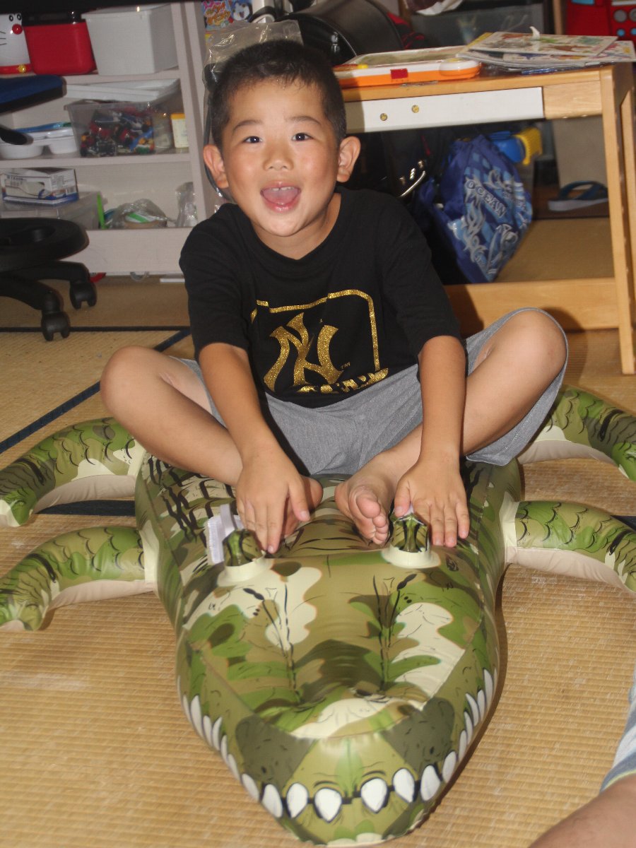 今年の浮輪はワニでした。