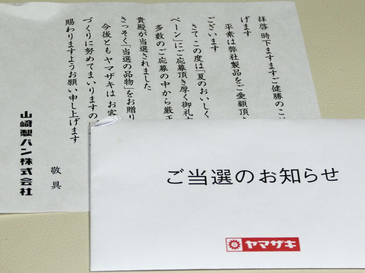 山﨑製パン夏のキャンペーンに応募したところお菓子セットが当選しました。孫は大喜びです。