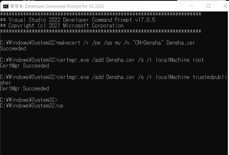 certmgr.exe /add Densha.cer /s /r localMachine root
