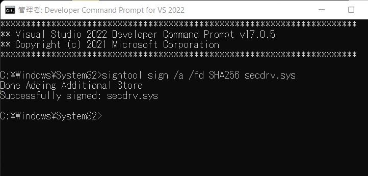 デジタルドライバを署名するために secdrv.sys というファイルを準備します。
