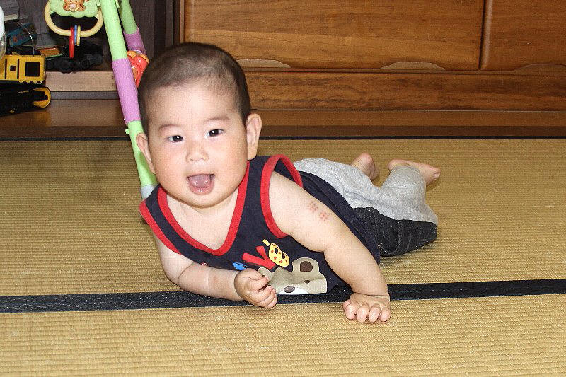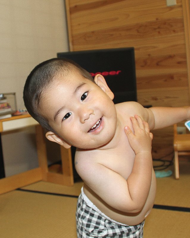 2013年7月5日坊主頭に散髪してもらいました。記念撮影です。待ち受け写真狙いだそうですが、気にいった写真はあったのかな?