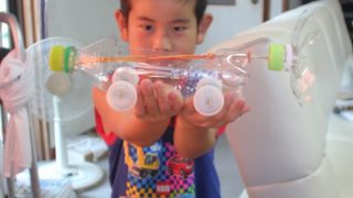 我が家では、最近ペットボトルで工作をやっています。これは、自動車ですが走りはわるいですね。これは、船です。結構早く走ります。どうだ!!これは牛乳パックの船ですが、どうでしょう?