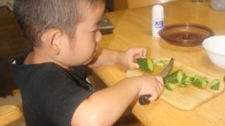 今年の誕生日プレゼントは秘密基地です。夕食の準備のお手伝いをしました。