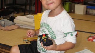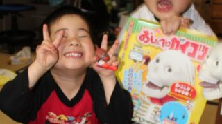 誕生会をしました。母ちゃんからのプレゼントはレゴブロックでした。兄ちゃんは、ついでの工具セットのプレゼントでした。