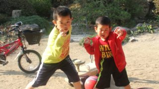今日は、父ちゃんとバレーボールをしました。